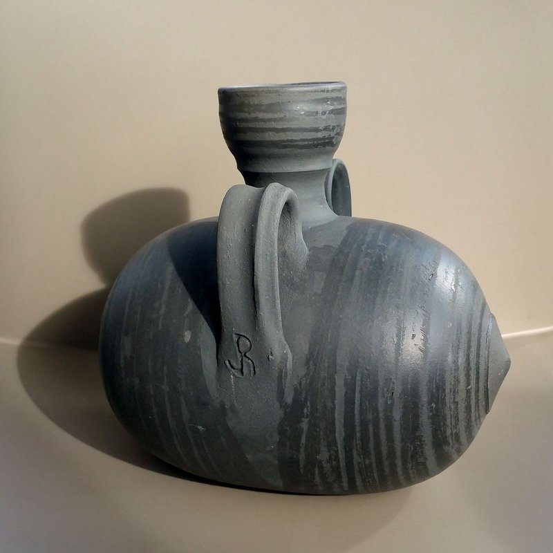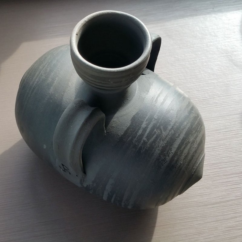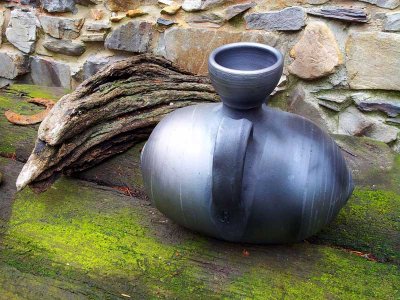 Cántaro de cerámica negra de llamas de Mouro, el horneado sin oxígeno le otorga su típico color negro, y su gran dureza.