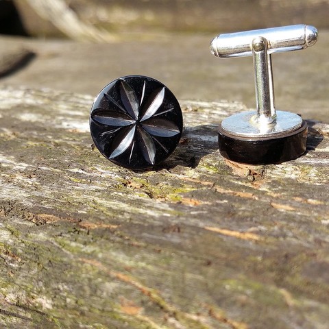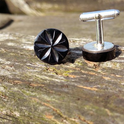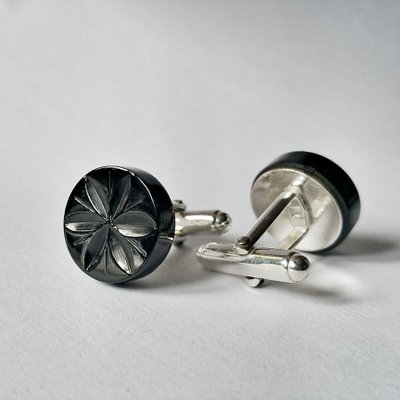 Gemelos de azabache asturiano y plata - Artesania de Asturias