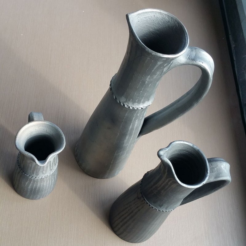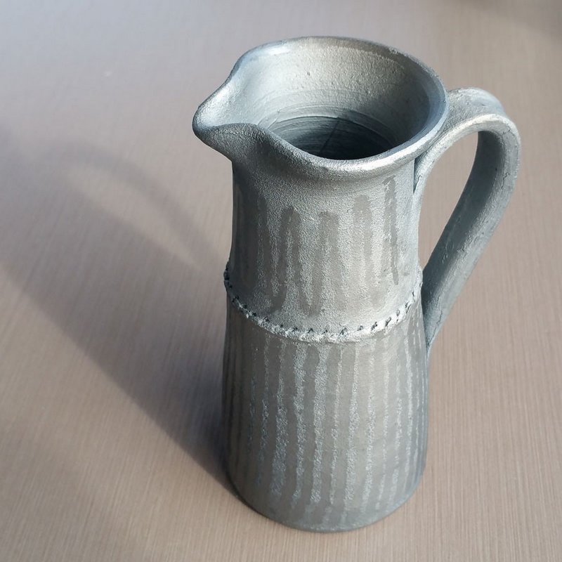 Jarra perfecta para su uso diario o decoración. Gran dureza por su cocción a altas temperaturas.Color entre negro-gris y gris-plata. Dimensiones aproximadas 9x14,5x7 cm. Anchoxaltoxfondo.