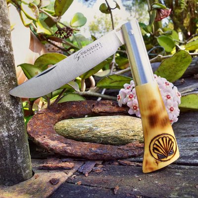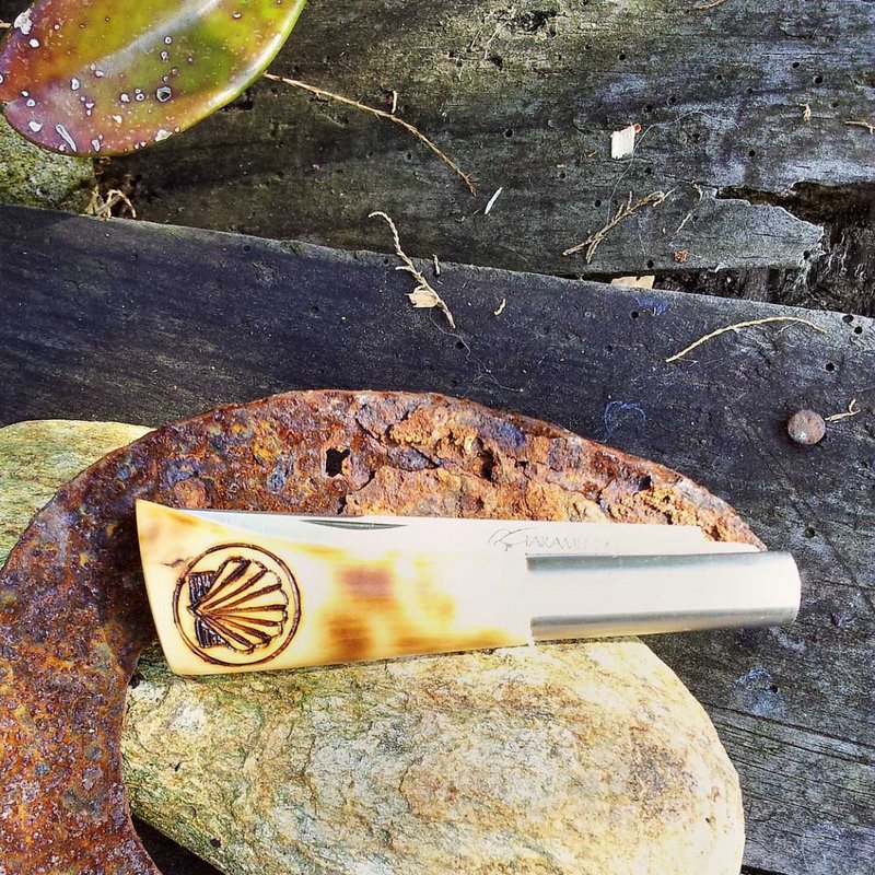 Navaja concha Santiago pirograbada - Artesania de Asturias