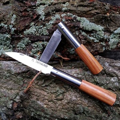 Navaja con mango de palo rosa del artesano de Taramundi, Fermín Lombardero. Hoja de 7 a 7,5 cm cerrada 9 cm.