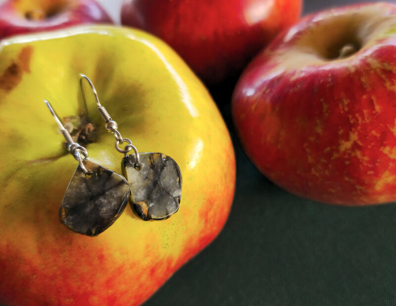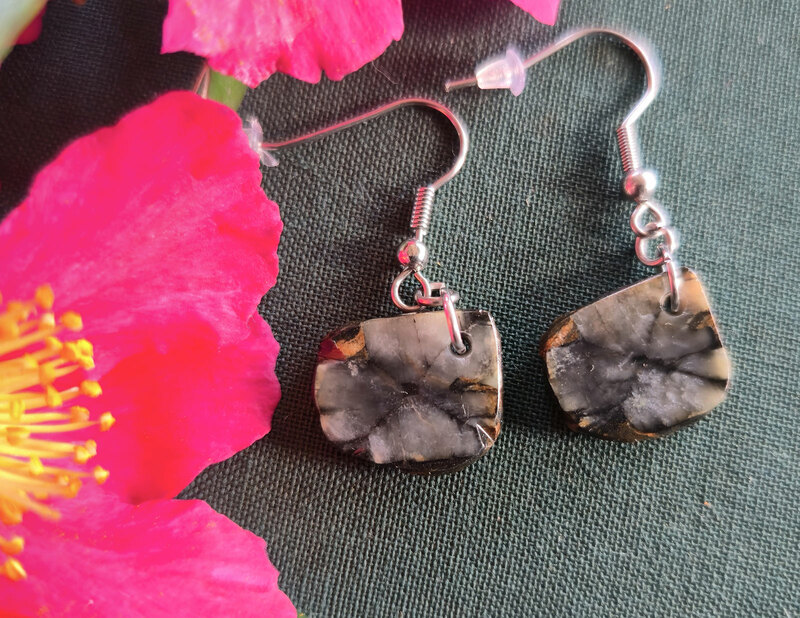 Pendientes colgantes con piedra de Quiastolita, engarce en acero inox hipoalérgico.