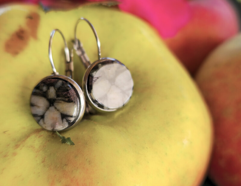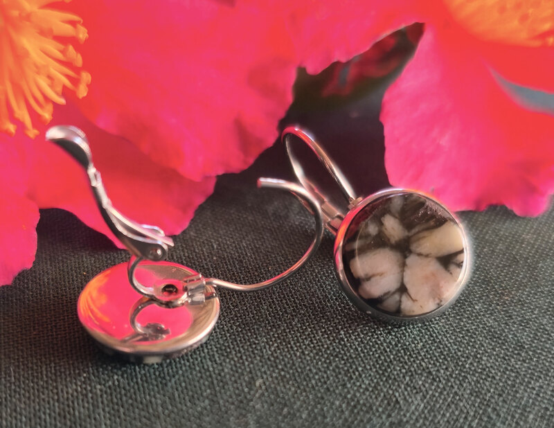 Pendiente con piedra de quiastolita y gancho con cierre en inox hipoalérgico.