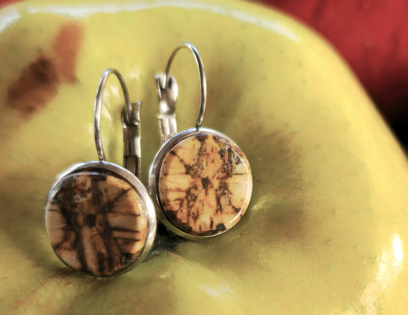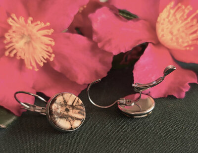 Pendiente con piedra de quiastolita y gancho con cierre en inox hipoalérgico.