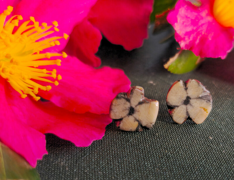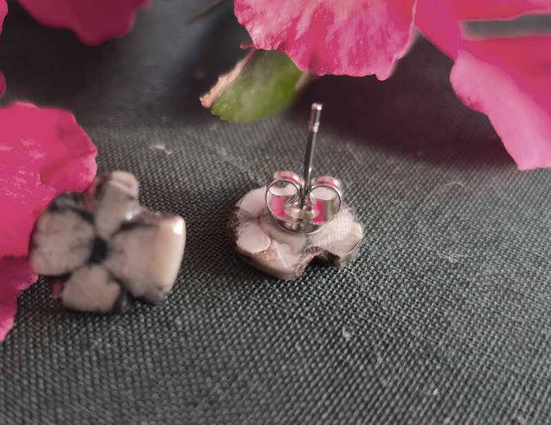 Pendiente con piedra de quiastolita y pin en inox hipoalérgico.
